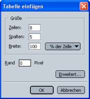 Reiter Tabelle und den Wert für Zeilen von 1 auf 5 setzen. OK